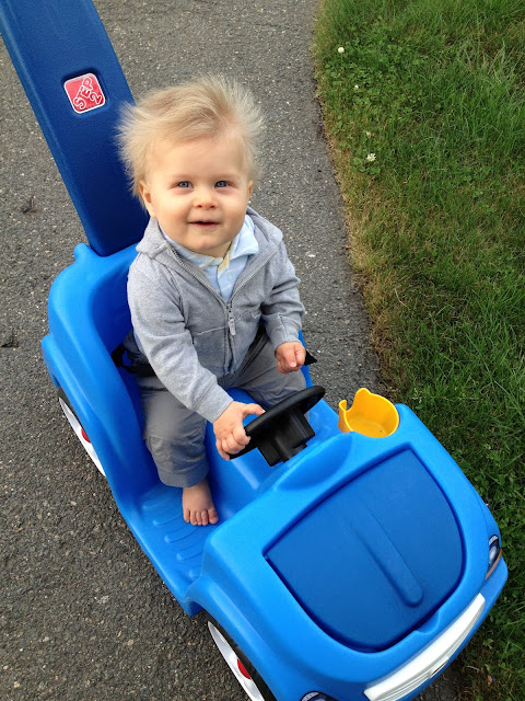 He likes to end his day with a drive after dinner so we've done LOTS of loops around the neighborhood - again with the oh-so-cool arm drape!
